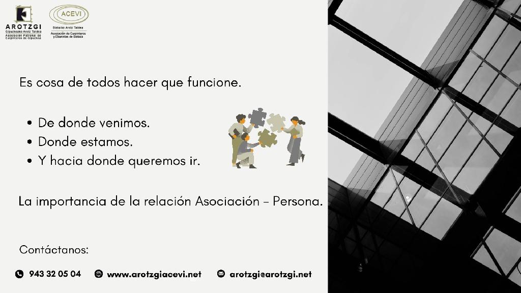 No somos nada sin nuestros asociados. Eso lo tenemos claro aquí, en AROTZGI/ACEVI. Solo uniendo nuestras fuerzas podemos hacer que la relación asociación-persona/empresa funcione y, así, defender y mejorar el sector de la madera.