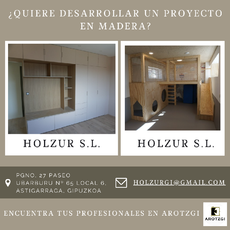 HOLZUR SL espezializatuta dago zoruak, armairuak, sukaldeak, ateak... instalatzeko eta muntatzeko esku-hartzeak egiten. Baita arotzeriakoak ere, oro har.